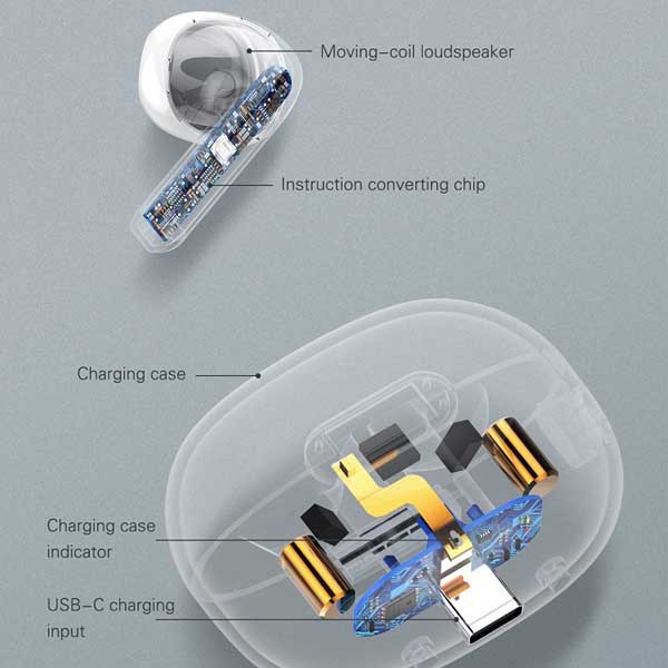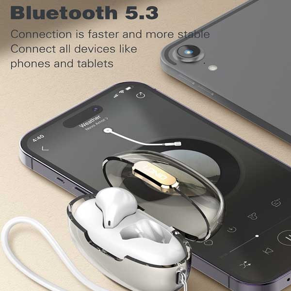 بلوتوث ورژن 5.3/ظرفیت باتری باکس 300 mAh/پخش HD صدا/درگاه شارژ کیس Type C/دارای دکمه لمسی/ظرفیت باتری هر یک از گوشی ها 30 mAh/مدت زمان پخش 4 ساعت/حداکثر مسافت جوابدهی بیسیم 10 m/زمان شارژ کامل 1 ساعت. در صورت شارژ کامل گوشیها و کیس تا 20 ساعت PlayTime